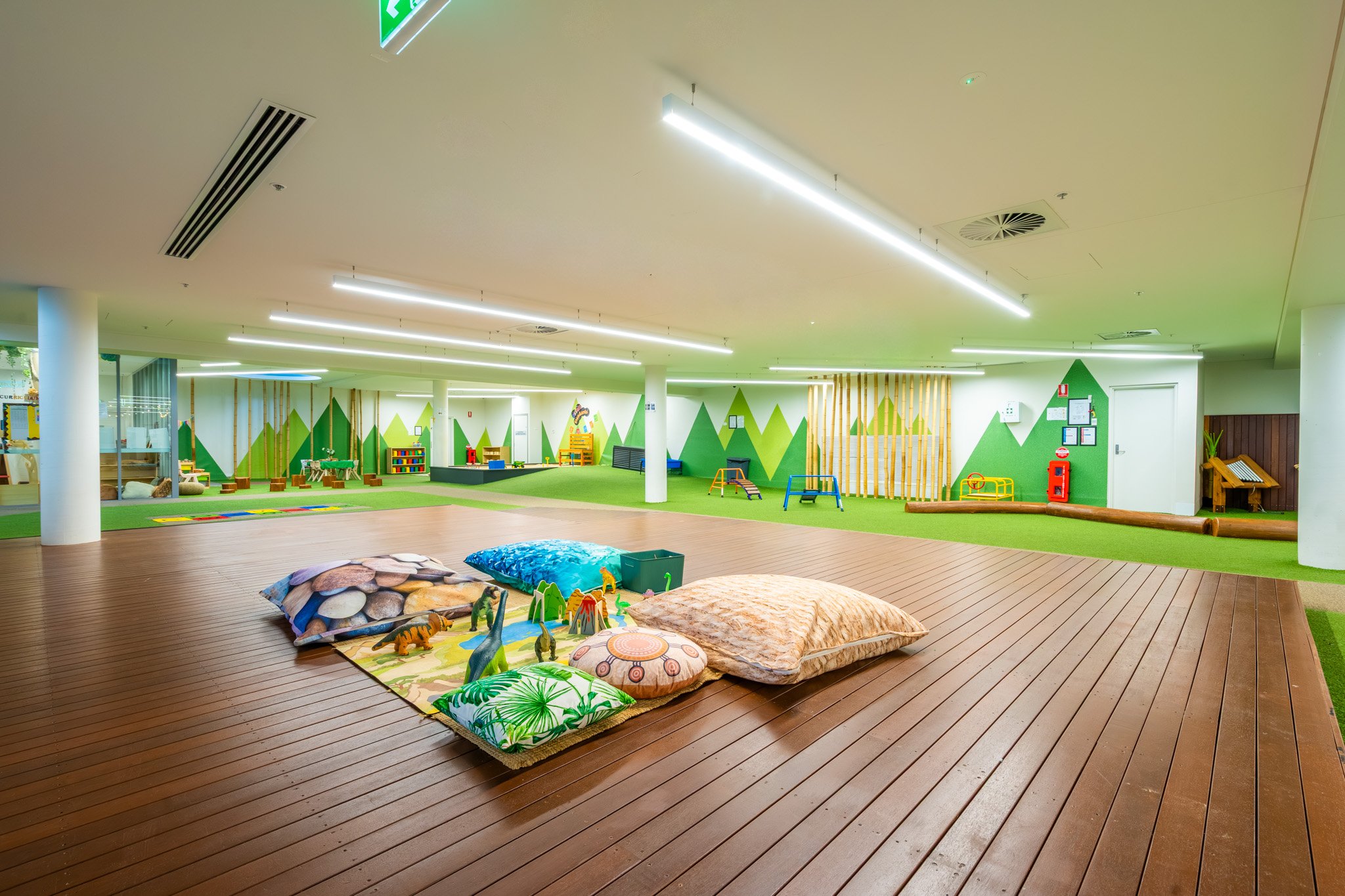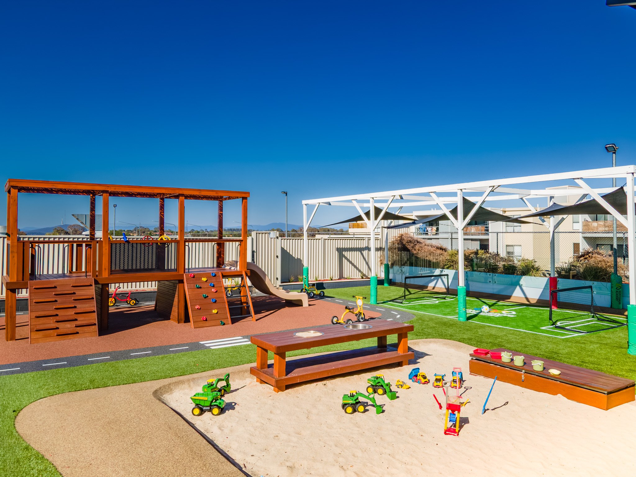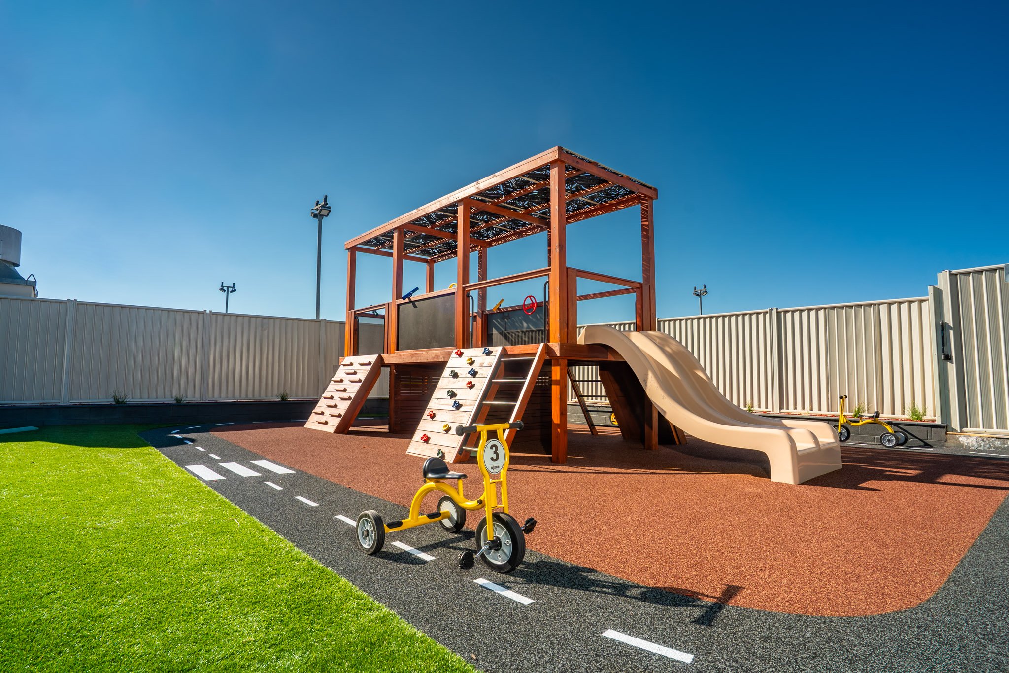 Children aged 2-6 enjoy a fort, rock climbing wall, bike track, dress-ups, and more to inspire active play and imagination.