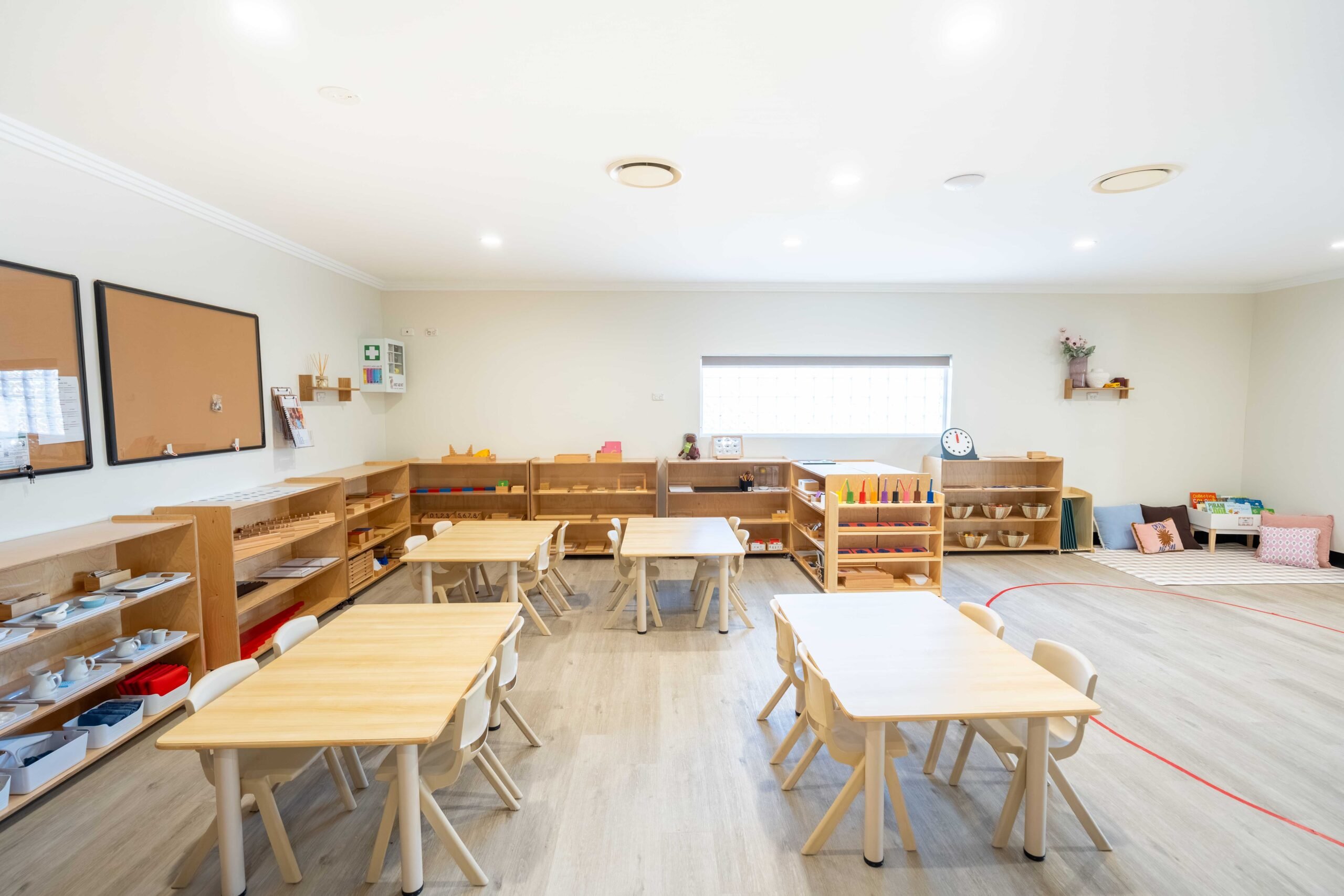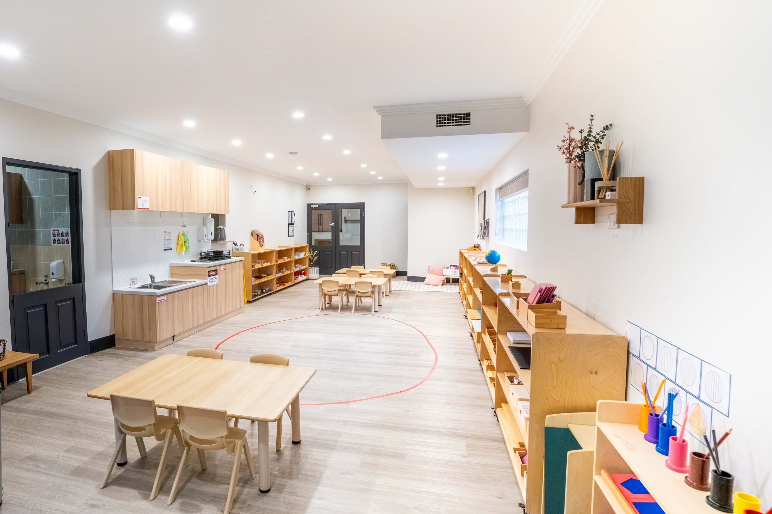 The open-plan centre features four Montessori classrooms for infants (0–2 years), toddlers (2–3 years), and preschoolers (3–6 years). Each room has hands-on materials tailored to your child’s age and interests to support their development.
