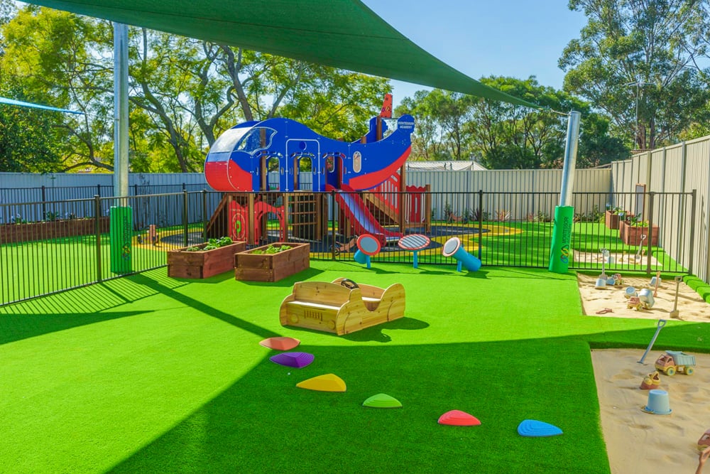 Beyond the classroom, our Toongabbie childcare centre offers two wonderful outdoor play spaces filled with gross motor activities that inspire learning through exploration. The 0-2 outdoor area features gardens, a sandpit, climbing equipment, musical instruments, soft spaces, bikes, water play, and more. For ages 2-6, children enjoy an aeroplane fort, climbing structures, bike track, dramatic play corner, teepee, dress ups, sandpit, gardens, water play, and so much more.