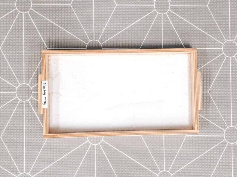 Create your own tracing tray to practice writing letters and numerals using salt, semolina, or sand.