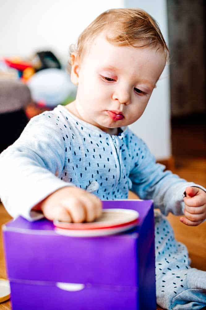 Create your own Imbucare Box using found objects to explore the concept of object permanence with your toddler. Extend on the activity by adding counting and sorting.