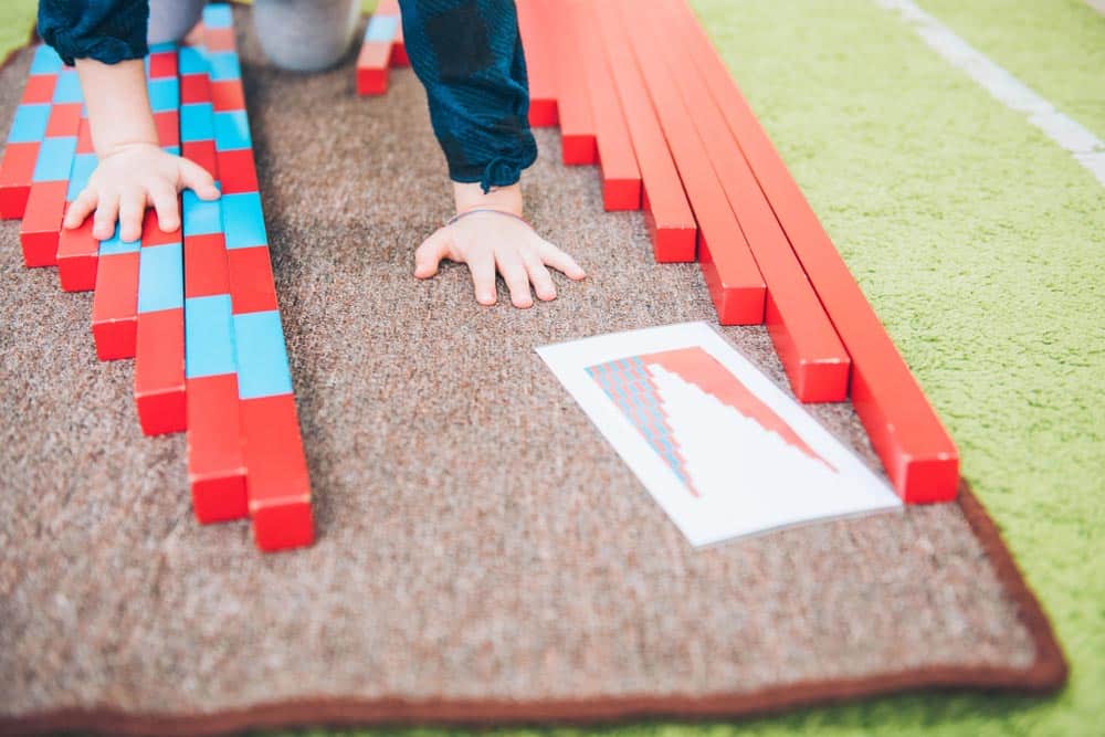 This lesson promotes concentration, independence, and attention to detail. Encourage your child to use both hands to align the rods carefully and neatly.