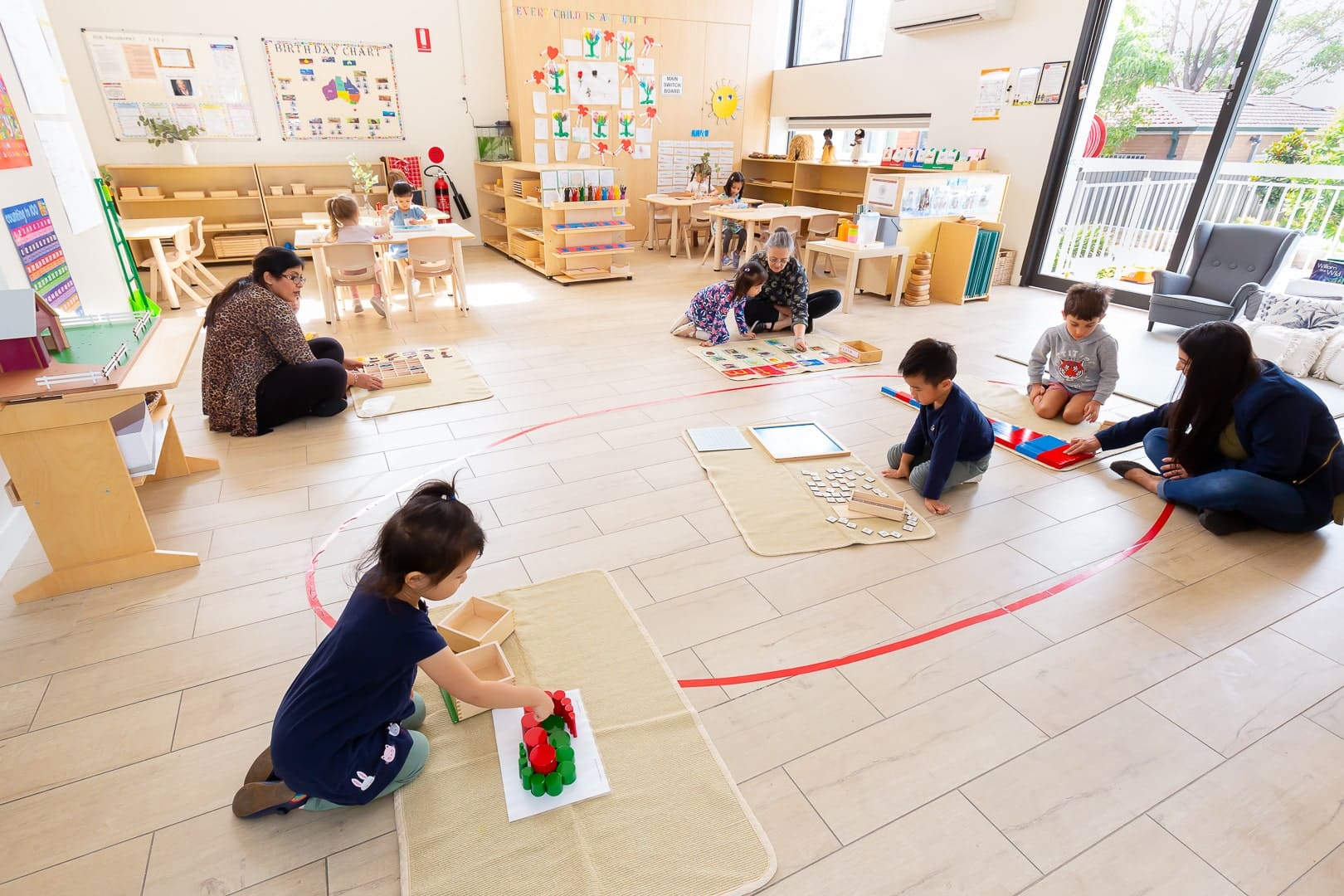 The Montessori classroom is known as the prepared environment because it is purposefully prepared by a trained Montessori educator to create the optimal learning environment for children. The classroom itself is neutral, open-plan, and has a distinct sense of order, beauty and harmony. Everything has a purpose and a place.