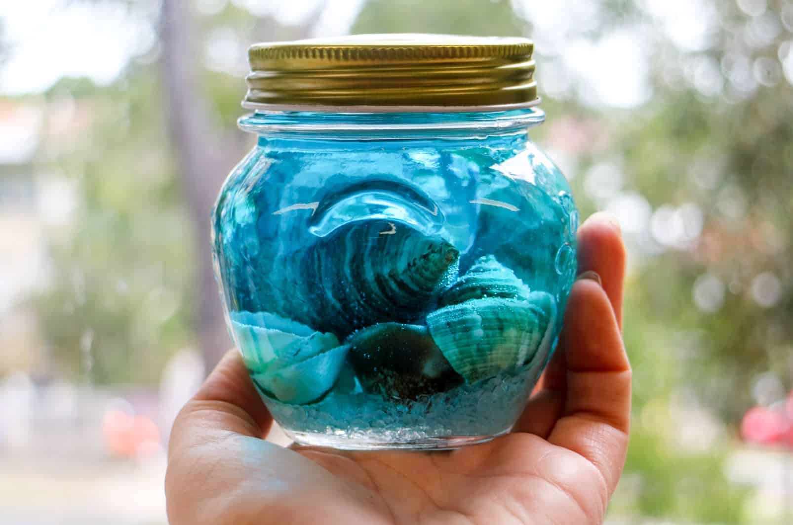 To celebrate the warmer months, we decided to make Summer themed sensory bottles using recycled jam jars, rock salt, blue food colouring, and beach shells collected by our students.