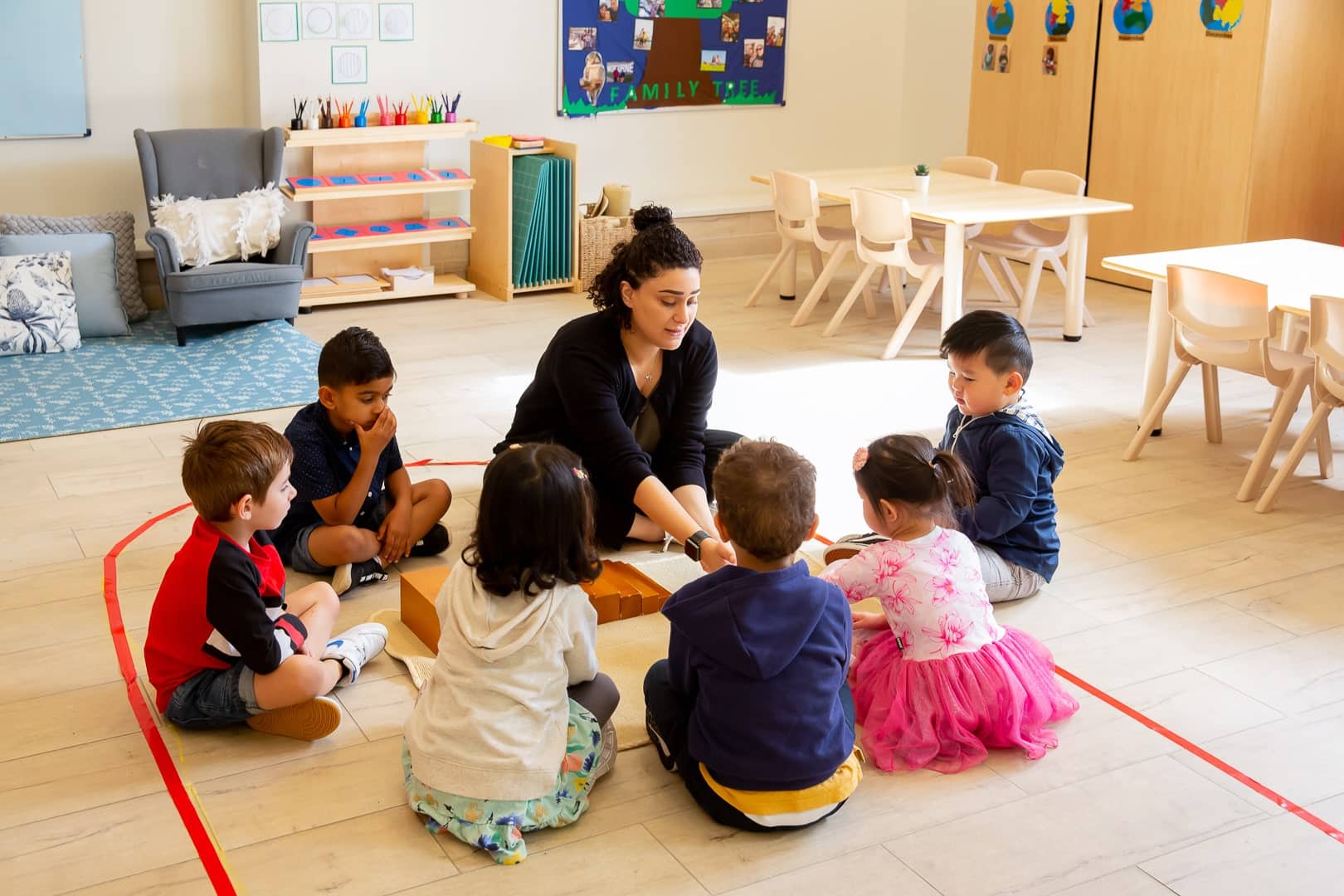 Educators present lessons to the children, introduce the Montessori materials, and allow them to work with the material at their own pace. Learning is individually paced and based on each child’s developmental needs and interests.