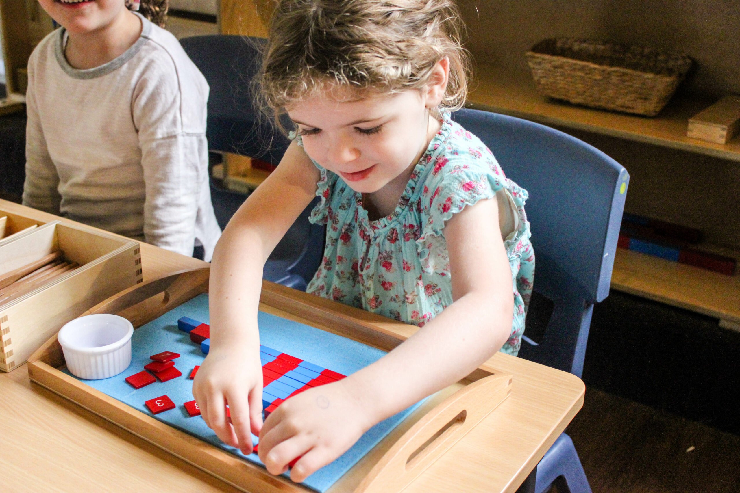 This begins on the first day, when the new student is introduced to the daily routine, structure of the Montessori classroom, and their fellow students.